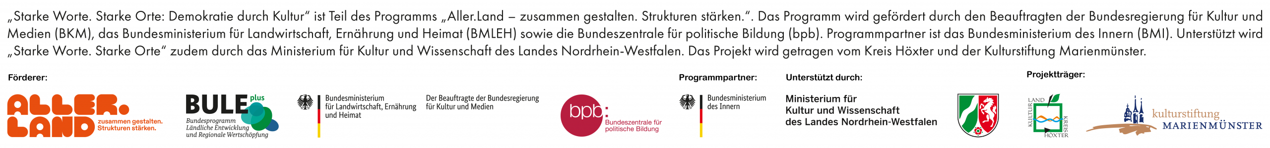 Die Bundesförderung des Projekts Starke Worte. Starke Orte: Demokratie durch Kultur als Teil des Aller.Land-Programms ist nun wirksam geworden.